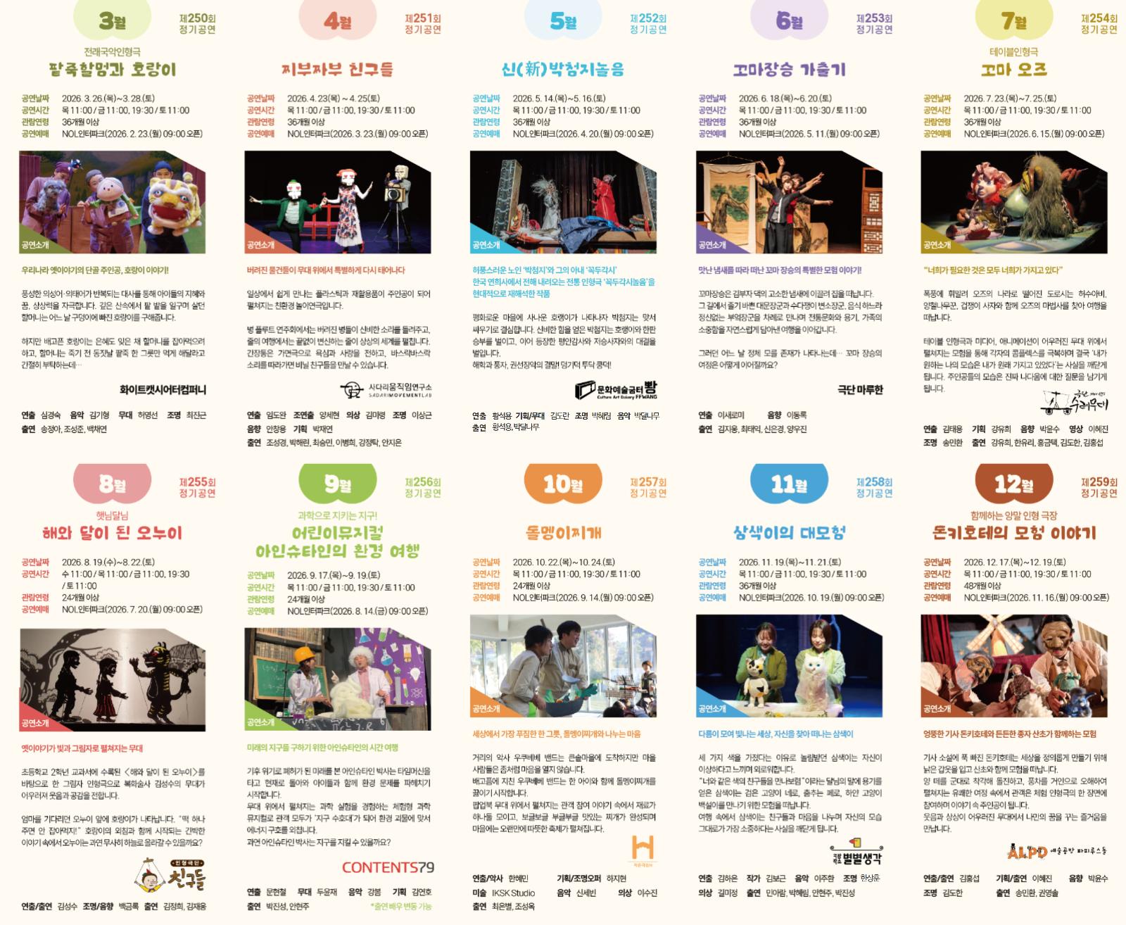 2026년도 상상극장 정기공연 라인업을 공개합니다. 많은 관심과 관람 부탁드립니다.