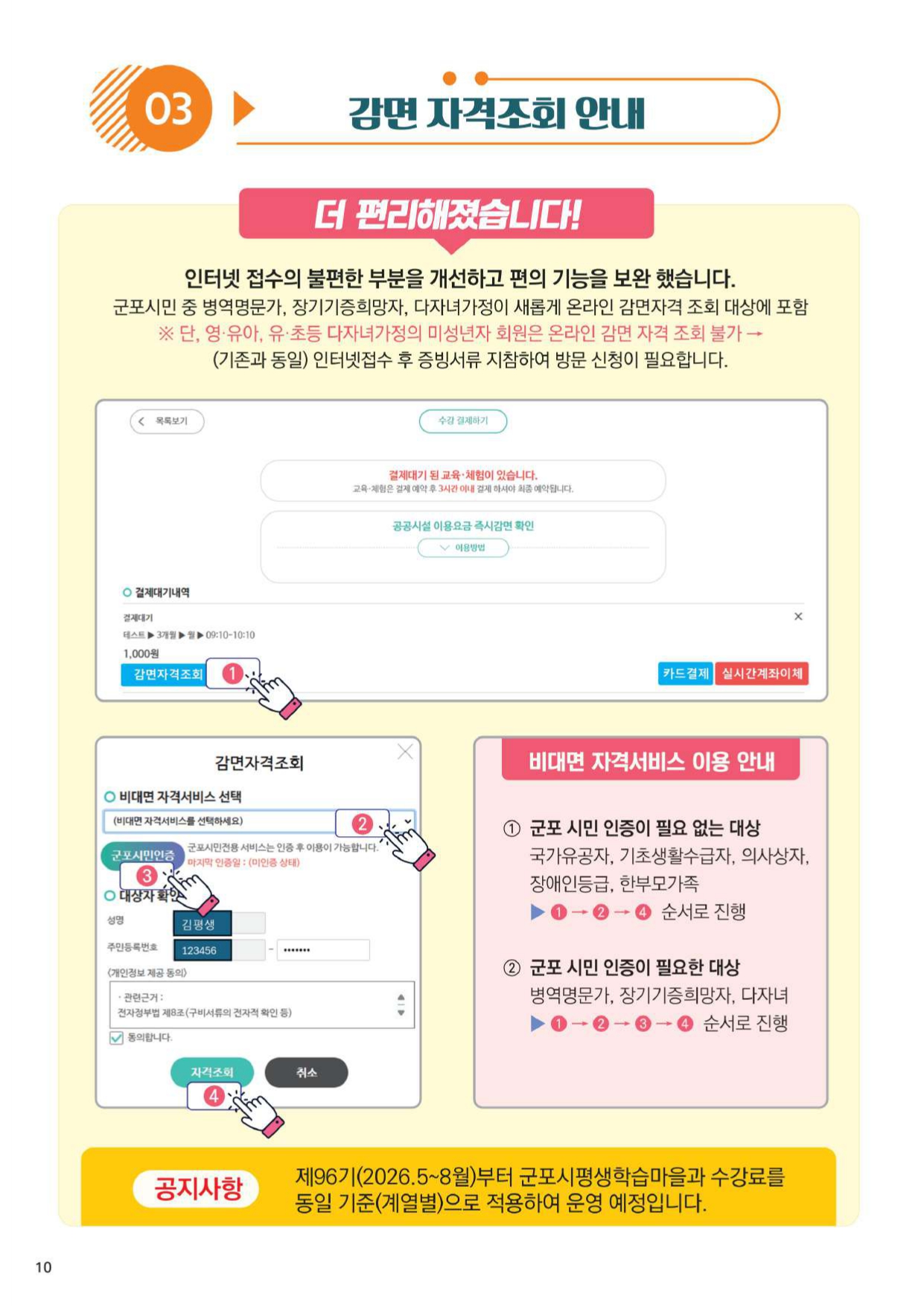 군포시평생학습원 감면 자격조회 안내