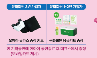 - 회원 가입 시, 웰컴키트 증정 (단, 재고 소진 시까지 선착순 증정, 문화회원 모바일카드 제시 필수)