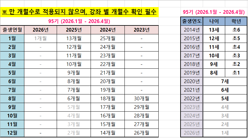 ☆95기 영유아 강좌 “꼭” 개월 수 확인 부탁드립니다.